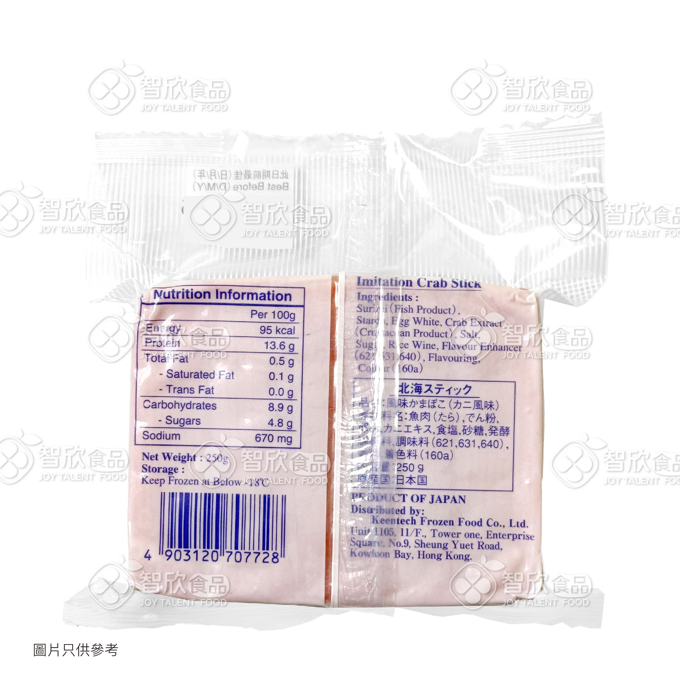 日本北海道進口,耐嚼爽口,味道鮮甜,濃郁蟹柳香。炒菜、沙律、煮麵,任你配搭!每包250g
