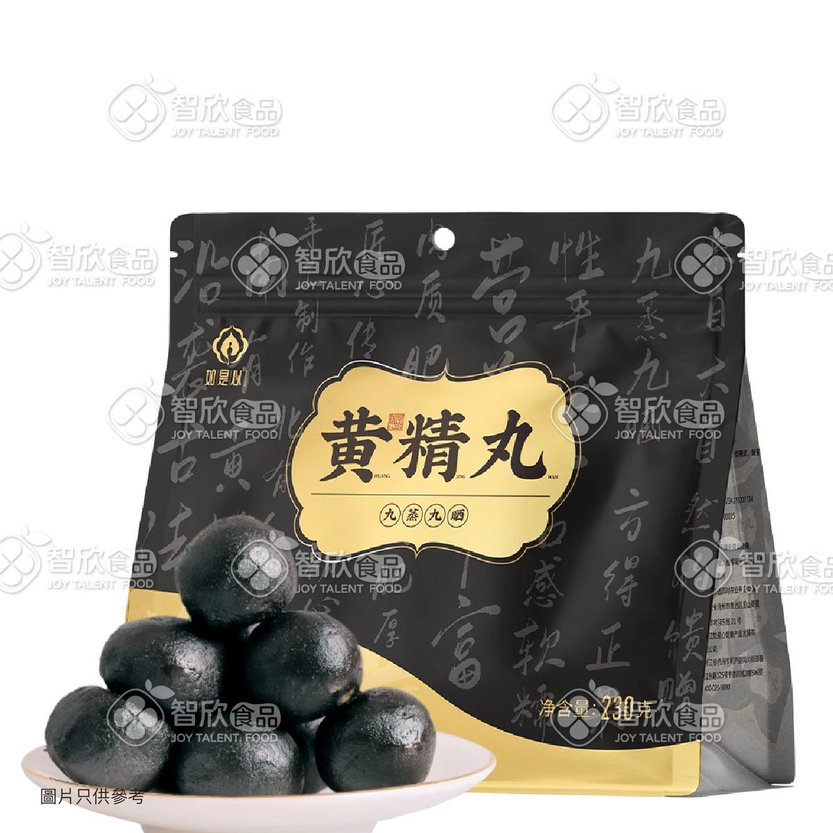 特色:選取8年以上優質黃精原料,本地優質芝麻,透過九蒸九曬的傳統工藝炮製.(九蒸九曬,古書中又稱九蒸九曝或九制,始創於中國古代,發揚於 近現代,常用於黃精、黑芝麻等中藥材的砲製。其炮製工藝歷經生用→單蒸→重蒸→九蒸九曬的演變,可達到降低毒性、增強療效、改變歸經、利於貯存、 消滅病菌等目的。黃精經九蒸九曬炮製後化學成分和藥性藥效均有顯著變化,從而廣泛應用於醫藥品、保健品、食品等領域。)蒸曬後的黃精和黑芝麻磨粉, 加入進口楓糖漿和農家土蜂蜜成丸,楓糖含有豐富的礦物質、有機酸,熱量比蔗糖、果糖、玉米糖等都低,但是它所含的鈣、鎂和有機酸成分卻比其他糖 類高很多,營養低脂,能補充營養不均衡的虛弱體質。